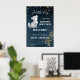 Chá de fraldas de boas-vindas do pequeno lobo, sinal de poster instantâneo, golfe de lobo giro escuro fundo noturno estrelado, decor de entrada de chá de fraldas.