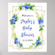 Poster Sinal de boas-vindas do Chá de fraldas Floral Blue