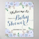 Elegante Vintage Light Blue Lavanda Color Watercolor Floral Chá de fraldas Sinal Poster de Boas-vindas. Todo estilo de texto, cores, tamanhos podem ser modificados para ajustado das suas necessidades.