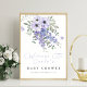 Poster Sinal de boas-vindas do chá de fraldas floral púrp