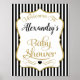 Um elegante sinal de boas-vindas do chá de fraldas, que inclui listras brancas pretas e aparas douradas com nome personalizado para as mamães a serem. Um bonito design de espiral de ouro com coração no centro faz deste chá de fraldas um sinal adorável para apresentar convidados ao seu chá de fraldas formal. Mais itens em preto e ouro podem ser encontrados no meu compro.