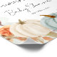 Este pequeno sinal de boas-vindas ao chá de fraldas floral é perfeito para um chá de fraldas elegante. O design apresenta belas abóboras aquáticas em branco, azul e laranja, com flores boho em terracota e marfim com verde. Uma letra elegante é o toque perfeito para terminar. Personalize com todos os detalhes do seu chá de fraldas.
