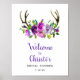 O sinal de boas-vindas do Chá de Noiva Floral Boho com Galhadas apresenta arranjo de flores roxas em aquarela e folhagens com galhadas. Adicione o nome da noiva e a data do chá. Que maneira linda de receber seus convidados!