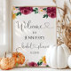 Sinal de boas-vindas do chuveiro de noiva floral burgundy outono. Decoração de chuveiro de noiva para se apaixonar no outono.