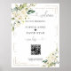 Design elegante com código QR (fácil de substituí-lo para que seus hóspedes possam ver o programa de cerimônia de casamento), caligrafia moderna, flores de creme branco de aquarela, falso quadro de brilho. Use a ferramenta Personalizar para adicionar suas informações. Visite a Coleção de Casamentos com código QR.