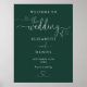 Este elegante cartaz verde esmeralda de boas-vindas ao casamento pode ser personalizado com suas informações em tipografia chica. Projetado por Thisnotme©