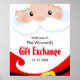 Esta placa de boas-vindas divertida e festiva apresenta um Papai Noel bonitinho em um terno vermelho e cinto de ouro. O texto combina fontes decorativas e sans serif para um aspecto na moda e moderno. Isto é perfeito para a festa de troca de presentes de Natal.