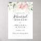 Este sinal de boas-vindas do janto de ensaio de folhagem verde-ouro é perfeito para um ensaio de casamento moderno. A design apresenta ouro desenhado à mão e folhagem botânica verde com flores rosa, pinceladas e brancas, inspiradoras belezas naturais.