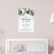 Este sinal de boas-vindas do janto de ensaio verde tropical é perfeito para um ensaio de casamento rústico. A design apresenta palmeiras verdes folhas buquês com flores brancas adoráveis.