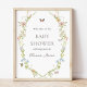 Sinal de boas-vindas do chá de fraldas com um quadro de flores silvestres e borboletas flutuantes. Personalize com suas informações para que a mãe esteja. Clique em "clicar para personalizar mais" para alterar o estilo, o tamanho ou a cor da fonte.