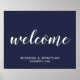 Marinho de Script Moderno - Sinal de Boas-vindas Azul de Casamento com título na fonte branca do script moderno com detalhes na fonte branca do sans moderno em fundo azul marinho.