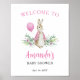 Sinal de boas-vindas do Chá de fraldas Pink do Coelho da Watercolor Peter Rabbit. Itens correspondentes disponíveis.