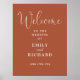 Este símbolo de boas-vindas do casamento do guião elegante do terracotta pode ser personalizado com todas as suas informações especiais sobre o dia do casamento. Projetado por Thisnotme©