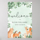 Este sinal de boas-vindas apresenta um design de animais de floresta bonitinho com um rumo moderno de boas-vindas. O sinal pode ser personalizado para se adequar a qualquer evento.