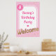 Este sinal de boas-vindas apresenta um moderno design cor-de-rosa e dourado. O sinal pode ser personalizado para se adequar a qualquer evento. O cabeçalho do script "Welcome" é uma imagem que não pode ser editada. Todo o outro texto é totalmente editável. Para personalização mais avançada deste design, basta selecionar o botão "Personalizar" acima.