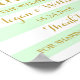 Bem-vindo ao poster de sinal de casamento com nome personalizado e data no padrão de listras verdes e brancas da casa da moeda com o efeito de brilho dourado confetti, por favor note que ouro é efeito fotográfico apenas.