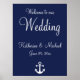 Bem-vindos convidados com charme costeiro usando este sinal de boas-vindas náuticas azul com design de âncora clássico. Perfeito para celebrações à beira-mar ou à beira-mar, combina elegância marítima com estilo de eterno. Uma bela maneira de dar o tom para o seu casamento náutico!
