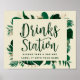 Folhagem Tropical Folhas e Verduras Tendências Sinal de Estação de Bebidas de Recepção de Casamento Personalizado - Marcador de Tendências com Letras em Script Escovado. Uma maneira divertida de agradecer aos seus convidados por comparecerem ao seu casamento! Em uma paleta de cores ousadas de verdes ricos, esmeralda e dourado. Este design é perfeito para um casamento na praia, destino ou verão. Com sentimentos de um paraíso tropical, este vibrante design de folhas de palmeira complementará o seu local de casamento na praia ou tropical. Em um esquema de cores verde escuro, azul-esverdeado, esmeralda, folhagem e dourado - Sinal de Estação de Bebidas de Recepção de Casamento Personalizado!