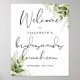 Este elegante sinal de boas-vindas para almoço de damas de honra com folhagens botânicas elegantes pode ser personalizado com suas informações em tipografia chic. Projetado por Thisisnotme©