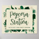 Sinal de Estação de Pipoca Personalizado para Recepção de Casamento com Folhagem Tropical e Folhas - Letreiro Moderno com Letras em Script Escovado. Uma maneira divertida de agradecer aos seus convidados por comparecerem ao seu casamento! Em uma paleta de cores ousadas com tons de verde rico, esmeralda e dourado. Este design é perfeito para um casamento na praia, destino ou verão. Com sentimentos de um paraíso tropical, este design de folhas de palmeira vívidas complementará o seu local de casamento na praia ou tropical. Em um esquema de cores verde escuro, azul-esverdeado, esmeralda, folhagem e dourado - Sinal de Estação de Pipoca Personalizado para Recepção de Casamento!