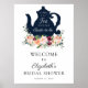 Dê as boas-vindas aos convidados para o seu chá de noiva com este belo cartaz, apresentando um bule de chá azul-marinho com flores Burgundy e rosas coloridas com folhagens. Adicione o nome da convidada de honra, data do chá e texto de boas-vindas personalizado usando os campos fornecidos.