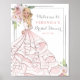 O sinal de boas-vindas para chá de noiva apresenta a noiva com vestido de noiva com brilho, glamour e faíscas. Múltiplos estilos de cabelo e tons de pele para escolher!