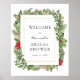 Dê as boas-vindas aos convidados para o seu chá de noiva com este lindo cartaz, apresentando uma moldura dourada rodeada por folhas perenes de inverno, poinsettias, frutos de azevinho e verdura. Adicione o nome da convidada de honra, data do chá e texto de boas-vindas personalizado usando os campos fornecidos.