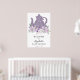 Dê boas-vindas aos convidados para o seu chá de bebê com este belo cartaz, apresentando um bule de chá de lavanda roxa com flores roxas e rosadas com folhagens. Adicione o nome da convidada de honra, data do chá e texto de boas-vindas personalizado usando os campos fornecidos.