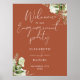 Este sinal de boas-vindas para festa de noivado com terracota botânica elegante pode ser personalizado com suas informações em tipografia chic. Projetado por Thisisnotme©