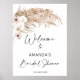 Bohemian Orchard Pampas Chá de panela Sinal de Boas-vindas Elegante, mas moderno, porém, símbolo de chá de panela de boho com alguns pampas, pomares brancos e um rosa cor-de-rosa. O título da caligrafia é uma imagem que pode ser removida. Esse sinal de boas-vindas do chá de panela temático boêmico é ideal para um chá de panela teórico.