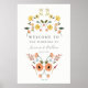 Bem-vindos convidados para a sua cerimônia de casamento com este belo cartaz, com uma cascata de flores desenhadas à mão. Adicione os nomes do casal, data do casamento e texto de boas-vindas personalizado usando os campos fornecidos.