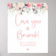 Poster Sinal de Brunch para Chá de Noiva com Aquarela Flo