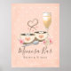O amor está no ar! Expresse sua alegria pelo casamento que se aproxima com um monte de amor com este letreiro de Bar de Mimosa em tons de creme, marrom, rosa e prata com duas xícaras de café que podem ser personalizadas com as iniciais e monograma da noiva e do noivo em seu design de coração rosa claro. Essas xícaras de café fumegantes em um pires com uma colher têm um coração de espuma flutuando nele. Um copo de champanhe com borda prateada e rosas rosa claro e flores de cravo creme. Fundo com padrão de coração de bolinhas. Arte © Chrissy H. Studios, LLC. Todos os direitos reservados.