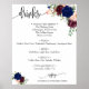 Poster Sinal de cardápio de bebidas casamento floral navy