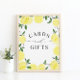 Sinal de Cartões e Presentes de Chá de Noiva de Limão Amarelo - perfeito para um chá de noiva temático de citrino de verão ou Main Squeeze.