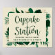 Poster Sinal de Casamento da Estação de Cupcake Verde Tro