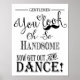 Sinal de Casamento de Banheiro de Cavalheiros - Caligrafia moderna com bigode Adicione um toque de humor e charme ao seu casamento com o Sinal de Casamento de Banheiro de Cavalheiros. Apresentando uma elegante caligrafia moderna e um gráfico de bigode lúdico, ele diz: "Cavalheiros, vocês parecem tão bonitos. Agora saiam e dancem." Perfeito para colocar na porta do banheiro ou próximo a uma cesta de renovação, esta placa mantém a vibração iluminada enquanto complementa sua decoração de casamento. Uma maneira na moda para lembrar os convidados para se refrescar e voltar para a festa! Projetado por The Arty Apple. Marcas: