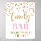 Sinal de barra de doces para chá de bebê, chá de noiva ou casamento em padrão de confete rosa claro e dourado com letras em estilo manuscrito. Perfeito para um chá de bebê, casamento ou chá de noiva.