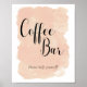 Este sinal de café para casamento, com seu fundo de aquarela rosa e escrita caligráfica e itálica, é uma maneira linda de decorar a mesa de café no casamento ou chá de noiva.