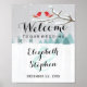 Cartaz de Sinal de Casamento de Rena e Pássaro Cardinal Vermelho da Cena de Neve de Inverno Elegante.