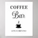 O Sinal de Casamento de Bar de Café adiciona um toque acolhedor e convidativo a qualquer celebração de casamento. Apresentando um roteiro elegante com uma frase como "O amor é a criação" , este cartaz orienta os convidados para a estação de bar de café, melhorando o conforto quente e acolhedora do seu evento. Perfeito para temas de casamento rústicos, de vassoura ou modernos, este cartaz geralmente inclui elementos decorativos como pequenos ícones de café, sotaques florais ou um fundo de quadro para um visual clássico, estilo café. Ideal para casamentos de dia e de noite, é um detalhe encantador que adiciona à experiência de convidado.
