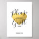 Sinal elegante e moderno para seu casamento, chá de panela ou qualquer outra ocasião; POR FAVOR, ASSINE NOSSO LIVRO DE CONVIDADOS. Linda caligrafia manuscrita em preto com falso coração de folha de ouro em fundo branco. Enquadre-o para torná-lo mais elegante e colocar na mesa na sala de recepção.