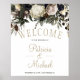 Flores de marfim branco de inverno buquê com pinecone sazonal, galhos e fazer de folhagem um lindo cartaz de boas-vindas ao casamento clássico com um moderno roteiro elegante e manuscrito de tipografia de ouro. ++++++++++++ Fácil de personalizar com seus detalhes! +++++++++ Para itens de casamento relacionados, consulte a coleção inteira sob a imagem principal.