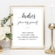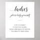 Esta placa moderna e elegante do banheiro de casamento é uma ideia excelente para encorajar seus convidados a terminarem e voltarem ao baile! Isto é parte da coleção Alejandra.