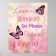 Sinal de casamento preto e rosa "O amor é doce, então aceite um tratado" para o doce buffet, cor-de-rosa e borboletas para um bar doce num casamento ou chá de fraldas.