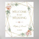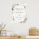 Poster Sinal de Casamento Verde Dourado Floral Rosa Flora