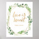 Lindo sinal floral verde 'O amor é doce' em folha de ouro falso e aquarela. Moldura ou clipe em um suporte. Perfeito para o seu casamento, chá de noiva ou chá de bebê. Convites e artigos de papelaria combinando também disponíveis. © Mini Moi Prints
