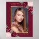 Sinal de boas-vindas de celebração da vida/funeral com foto floral em aquarela elegante, com rosas vermelhas e rosadas e flores de respiro decorando uma foto dentro de uma moldura prateada. Itens correspondentes disponíveis.