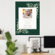 Uma elegante celebração da vida personalizada, sinal de serviço memorial fúnebre com folhagem botânica em aquarela em um fundo verde esmeralda. Criado por Thisisnotme©