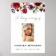 Este sinal de boas-vindas floral burgundy é uma ótima maneira de dar boas-vindas àqueles que vieram para a celebração da vida. Personalize com os detalhes e a foto da celebração da vida que você está organizando.